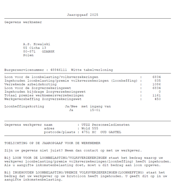 Jaaropgave 2025– omówienie dokumentu na konkretnym przykładzie