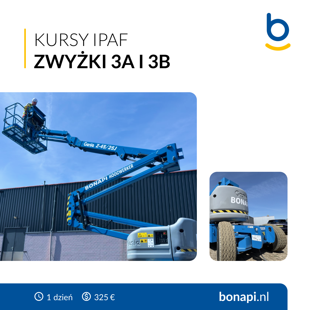 ZadzwońIPAF - KURS NA PODNOŚNIKI KOSZOWE I NOŻYCOWE to międzynarodowe uprawnienia. Gdzie nie pojedziesz, ten papier jest ważny. I co najlepsze: nawet jak wrócisz do kraju, możesz wykorzystać te uprawnienia.. a mało który kurs z Holandii jest respektowany również u nas w Polsce.