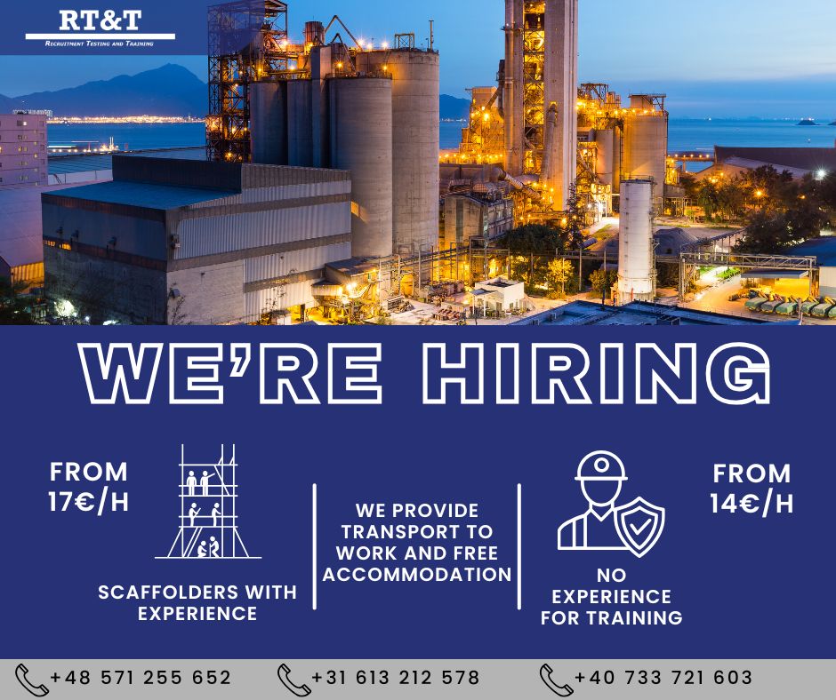 Po ukończeniu szkolenia zaczynasz pracęprzez agencję pracy RT&T. Stawka zależna od doswiadczeniai zdobytych certyfikatów.
