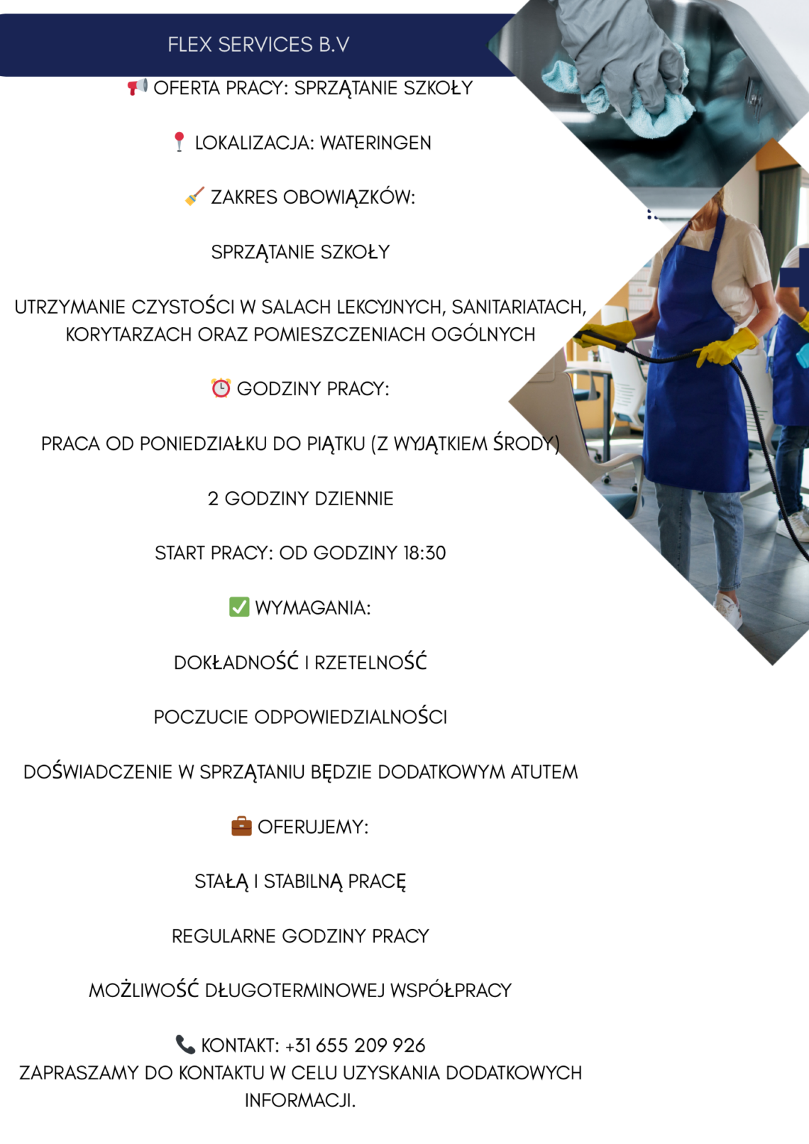 Zadzwoń📢 Oferta pracy: Sprzątanie szkoły