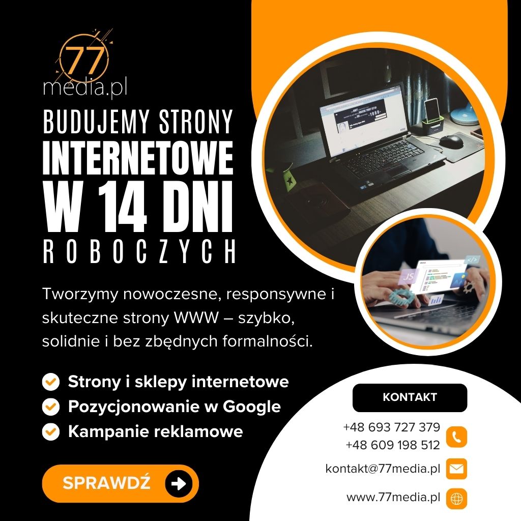 ZadzwońMasz dość przestarzałej strony, która nie przynosi klientów? A może dopiero zaczynasz i potrzebujesz profesjonalnego wizerunku w sieci na już? Dobrze trafiłeś! W 77media.pl zmieniamy wizje w działające biznesy – szybko, solidnie i bez zbędnych formalności!